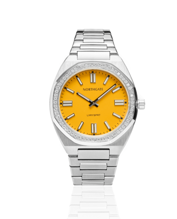*Dial-matching yuma yellow silicone quick-release strap with steel buckle