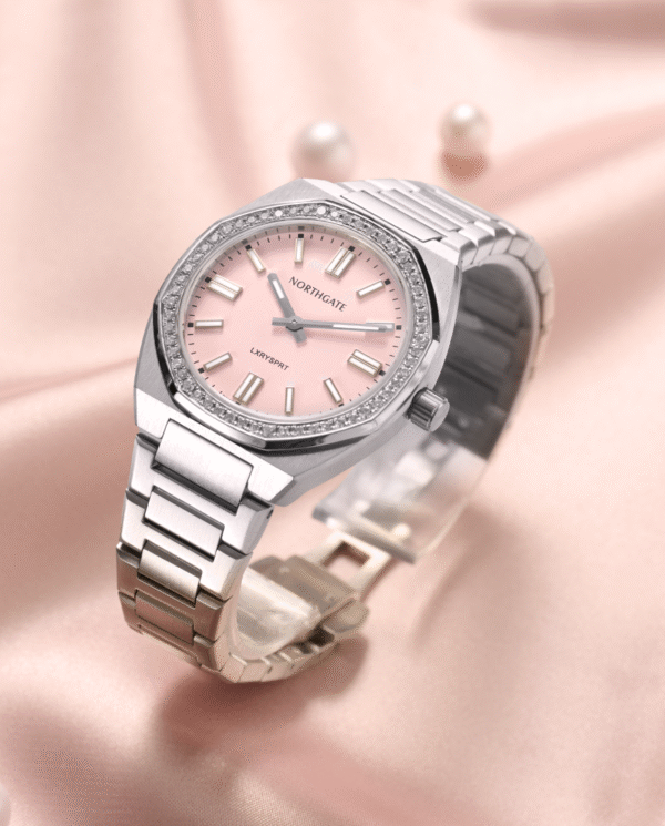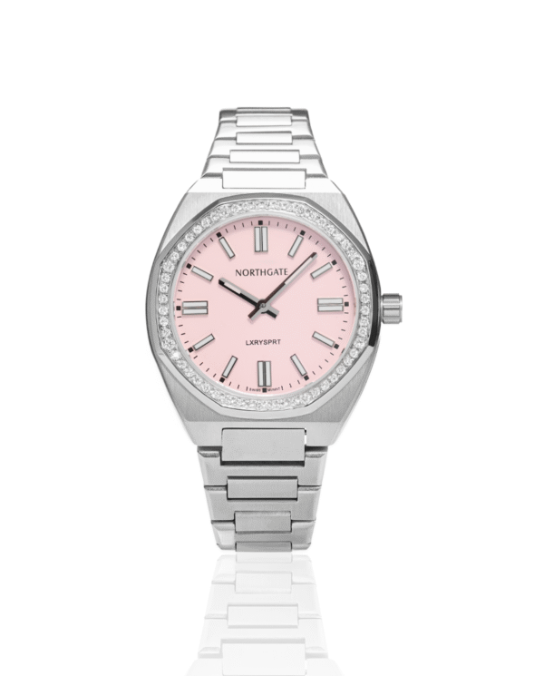 *Dial-matching perfect pink silicone quick-release strap with steel buckle