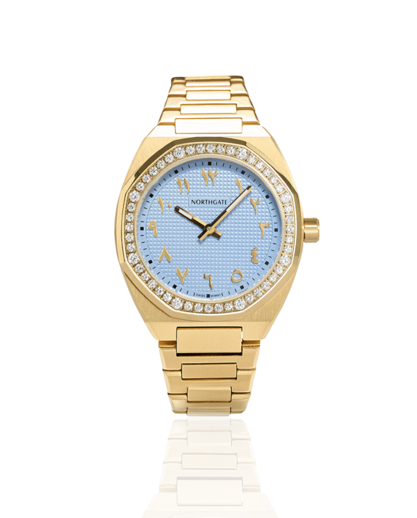 Sky Blue de Paris with Arabic Numbers diamond gold size 40mm