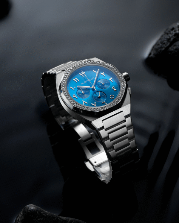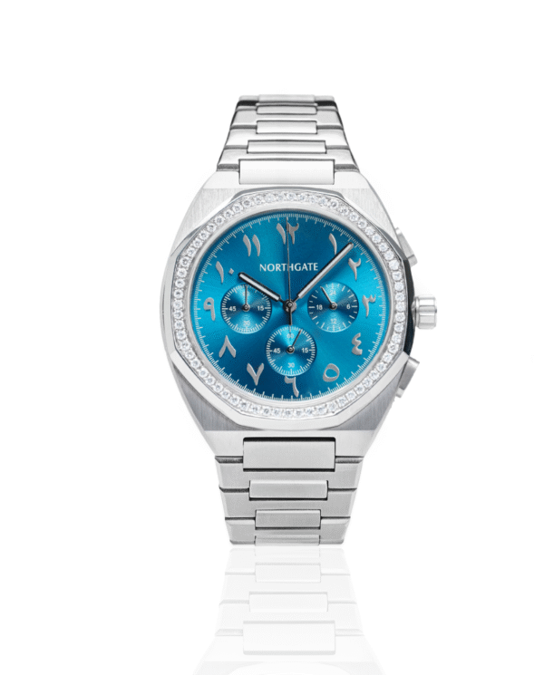 • Silver Sky Blue plated (DLC) integrated bracelet with butterfly clasp (special Northgate tool and extra links included for easy adjustment)