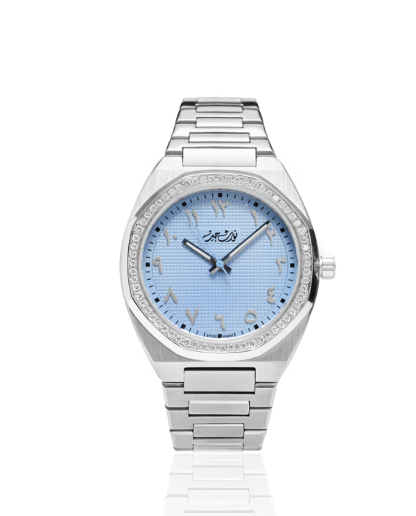Sky Blue De Paris Diamond Silver with Arabic Numbers size 40mm