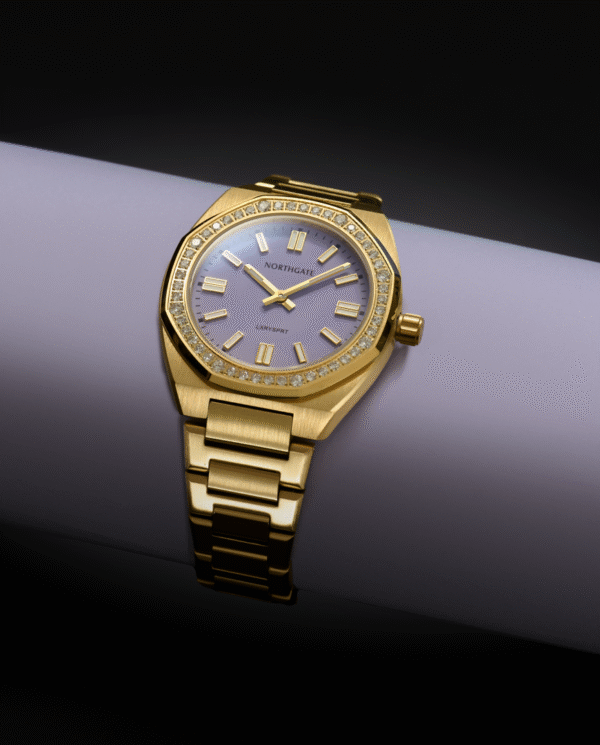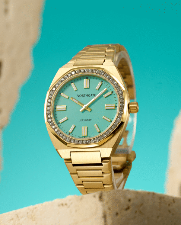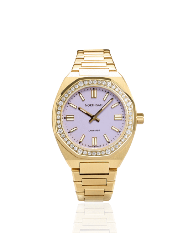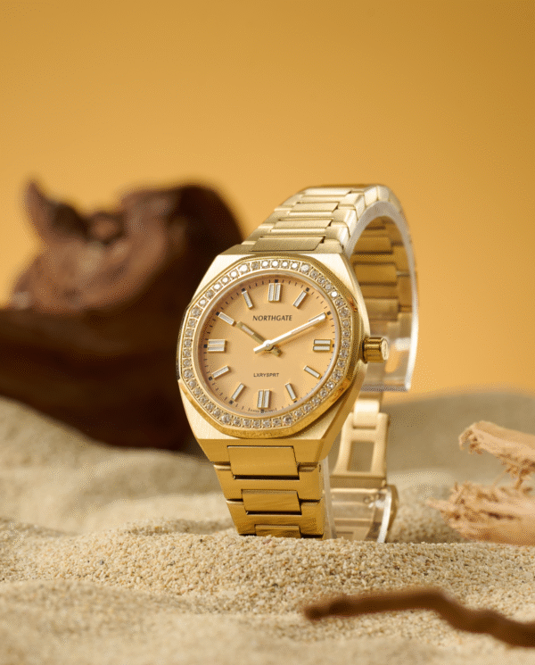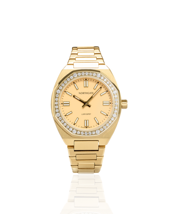 * Gold-plated Stainless Steel integrated bracelet with butterfly clasp (includes a special Northgate tool and extra links for easy adjustment)