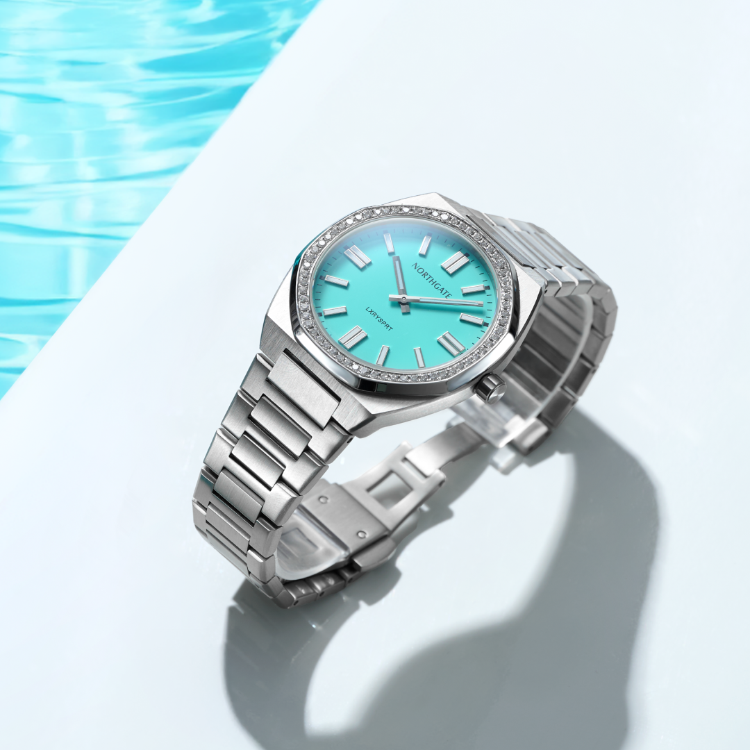 – Stainless Steel integrated bracelet with butterfly clasp (We added a special Northgate tool and extra links for easy adjustment of the bracelet)