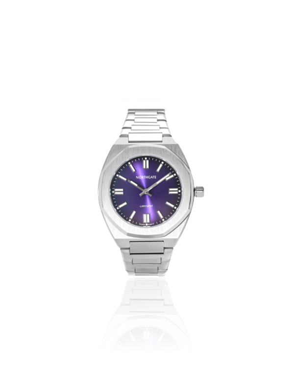 – Swiss Made Superluminova BWG9 on hands and markers. White during the day and Blue during darkness