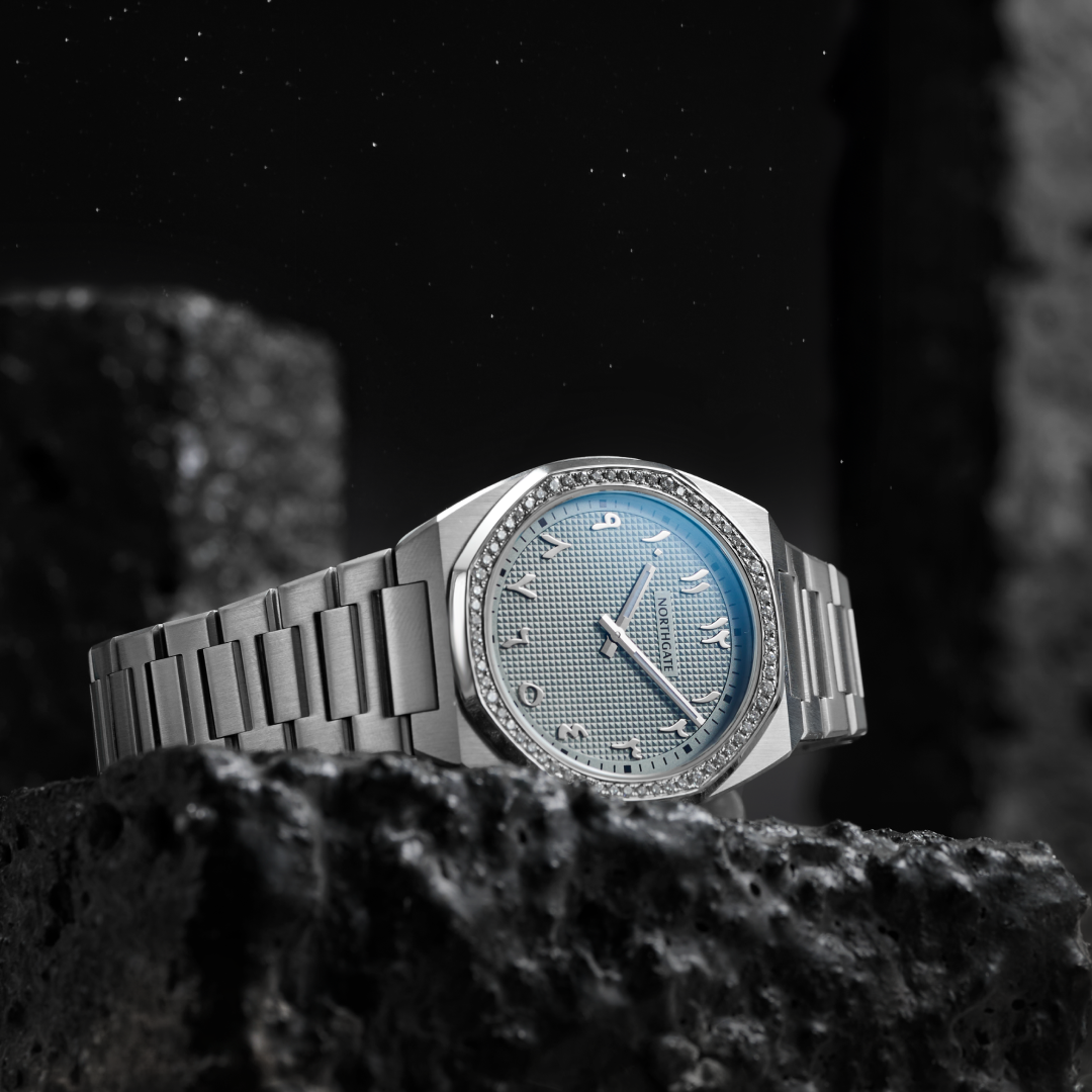 • Swiss Made Superluminova BWG9 on hands and markers (White during the day, Blue in darkness)
